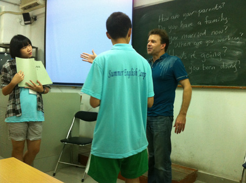 Everyone is very excited and looks forward to the classes. Our teachers are kind and young. They are patient with us. I think I will improve my English in the following days,and I am going to get along with my classmates.