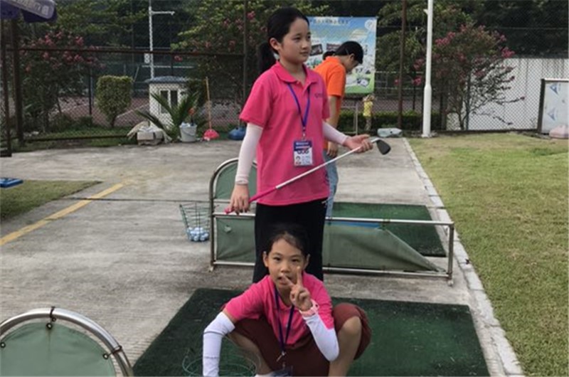 下午我和其他班的人一起学习了高尔夫的知识,在刘老师教我们动作时,可谓是痛苦不堪。不是蚊子叮咬就是汗流浃背,并且老师很严格,教完一遍秘诀后便要我们背下它。盼星星,盼月亮,终于练完了动作,我像只可爱的小狗一样累趴了。终于可以打高尔夫啦!打高尔夫的乐趣在于:把高尔夫球当作仇人,把球杆当武器 一下子打出去,有说不出的快感!哈哈,我的想法而已。这项运动看似十分简单,其实打起来很费劲,可是过程令人十分难忘。