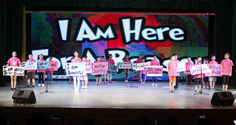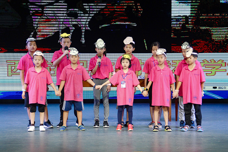 之后进入闭营典礼的“汇报演出”环节,由王瑜丽、孙太翔、钟立渲、李辉恒4位学员主持。首先上演的乐享云尚体育成果展《酷炫球技》,展现出学员在游泳、高尔夫、羽毛球、网球、篮球、足球等体育课中的收获与快乐;戏剧营A班的合唱《Monsters》,温馨抒情的节奏中回味夏令营里的每一刻;戏剧营A班诗朗诵《Morning Affirmations》,学员们手拿词块并大声朗诵,表演生动而有趣;科学营的舞台剧《西游记之对战科学堡》,讲述了唐僧师徒4人西天取经,途径科学堡,与科学堡专家PK科学能力全胜通关的故事;戏剧营B班的《Mr. Cat's Party》,描述了猫先生的奇幻宴会;绘本营B班的《嘿,我来啦!》,音乐动感,场下观众跟着节奏一起挥动肢体;外教交流营CD班带来的英文话剧《No pain, No gain》,再现经典故事“守株待兔”;戏剧营A班表演的话剧《Mount Semsi》,讲述了发生在一个神奇山洞的故事;交流营AB班和戏剧营B班的时装秀《对立面》十分精彩,学员身着相对色彩服饰上场,冲击视觉,活力十足;最后压轴上场的是由外教和全体班主任的歌曲串烧,外教深情而迷人的嗓音引来学员们阵阵掌声,而班主任们动感的歌舞表演,嗨翻全场,促使演出达到高潮。