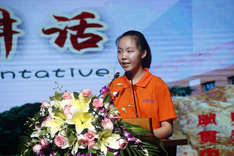 来自外教交流营AB班的王艺霖作为学员代表,上台发言。她对夏令营的班主任、中外教师老师表示感谢,并分享了她三次参加夏令营的经历和收获,表示明年一定还会继续来参加广外乐享夏令营。