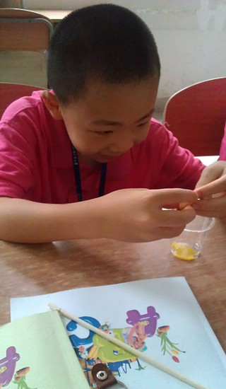 上课时,老师给我们讲解香水是怎么样制造的,香水的由来还有香水的用法。后面的半节课就是让自己做实验,制造香水。我们用到了酒精,精油,杯子,漏斗,纱布,过滤纸还有水。我们先用纱布包住橘子皮,挤出一些橘子汁。然后加4毫升的酒精,搅拌,在拿出另外一个杯子,用漏斗和过滤纸把橘子汁过滤。之后加水,最好放精油。就这样纯天然的橘子味香水就大功告成了!