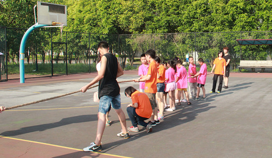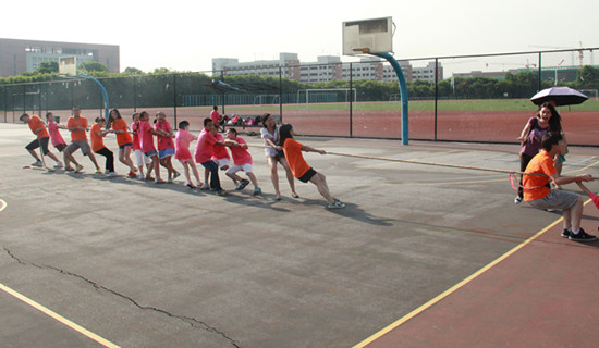 今天的课外活动,我们和美国科技营小学班的同学进行了有趣的拔河比赛。在老师的安排下大家很快就分好了组,小朋友们站在队伍的中间,队伍前后的重要位置都由我们高中部的大哥哥大姐姐们担当。比赛的过程中大家都拼命的向后拉,连董老师和向老师也加入了战局。同学们的呐喊声和老师们的加油声,让操场变得热闹非凡。大家顶着火辣的太阳比赛,汗水顺着脸颊流了下来,衣服都被汗水湿透了,双手也因为拉绳子变得脏兮兮,但每个人脸上都挂着快乐的笑容。虽然最后我们这一队输掉了比赛,但两队的人都非常开心。