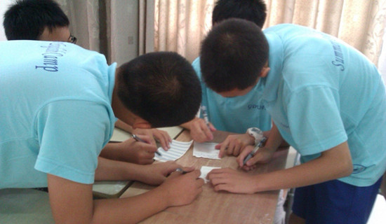 今天上午上了两节词汇课,陈老师与我们玩了考察记忆力和小组分工合作的英语游戏,首先我们分成了七个小组,我们小组经过商量一致取名为“如来佛祖”,还有好多有趣的组名,例如“东方不败”,“进士熊猫”“逆袭组”等等。我们第一轮游戏是把组成单词的字母打乱,然后重新排序,经过小组的讨论,最后取得了七分,第二、三关是在规定的时间内记单词,记得越多越好,经过激烈的碰撞,最后终于取得了第三名的佳绩。通过这个游戏我们认识到,记忆力好是一方面,小组分工合作也很重要。