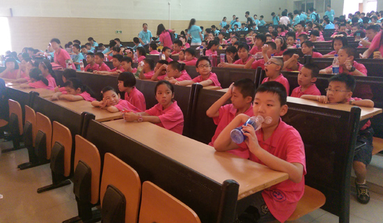 今天是7月13日,同时也是我参加“广外快乐英语夏令营”的第二天。这一天,我们迎着早上八点钟的太阳,排队走向了举行夏令营开营典礼的大礼堂。到了大礼堂门口的时候,我们先排了一下整体的队形,男女排成两排,由低到高,然后报数,每个人记住自己的数字,这就是以后站队的位置。