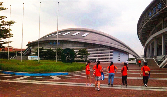 走到场馆附近,老班就带着我们绕圈,可能因为假期还是怎么样!场馆只开了一边的门,而且这个该死的门还在另一端,结果我们就绕着偌大个场馆走了一大圈,来到一个小门老班就带我们走了进去,越走越黑,发现不对劲。原来老班带错了路,走到了地下室库房。原路返回再接着绕,费了九牛二虎之力终于进到了这个亚运场馆,哇塞!真心大!非常大!而且里面很多人打球啊!球技都好犀利!我们的球技,是那种几乎可以不要用网不要用边线的水平,因为我们无论如何用力都不可能打出界的水平!我们就此成了球场的另类,尽管如此,我们都还是开心的打着,打自己的球让别人说去吧!不知不觉一个小时就过去了。