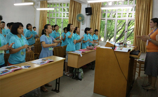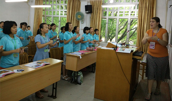 4、唱歌;Marina教我们唱了三首歌,我们边唱边做动作,整个课堂充满了活力。