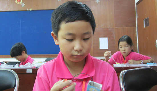 今天过得很开心,早上上了两节“小牛顿”课,这节课的内容是制作“会导电的溶液”。早餐后,我们就带着好奇走进了课室。老师首先讲解了“物理”和“化学”的区别,然后发材料,最后示范并制作“导电溶液”:先把食盐、小苏打、白糖、柠檬酸分别倒入一定量的水中,并用小木棒搅拌四种物质。接着再做一个电池盒和灯泡,一种一种试验四种溶液,观察小灯泡会不会发亮。实验结果表明,四种溶液都能导电,真是太神奇了!