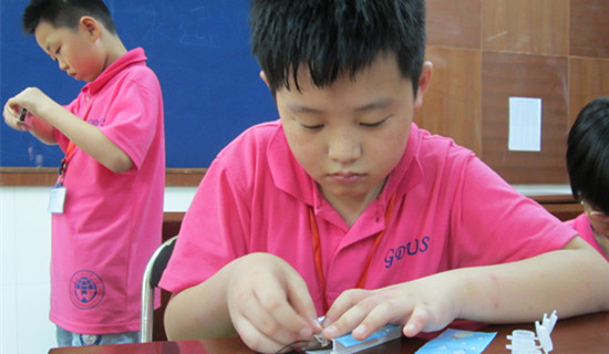 认真做实验的王一铭同学