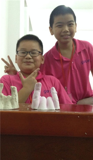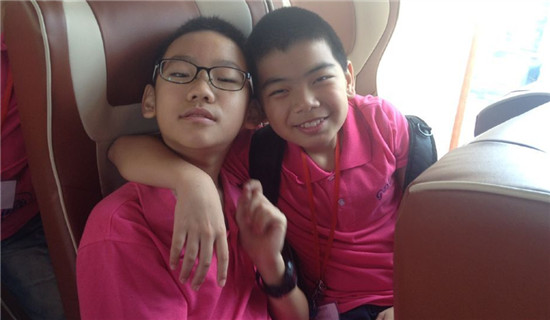 廖卓栋(右)与同班同学合影