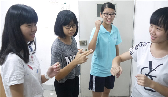 邹诗妍(右二)和同学玩游戏