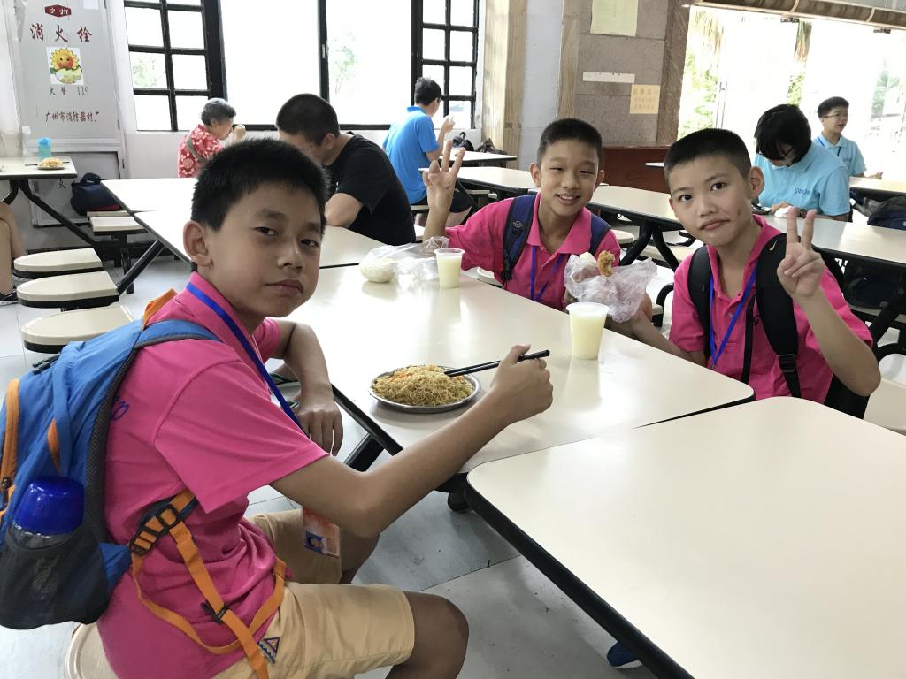 上完三节课后,大家的肚子都用了“空城计”。一来到饭堂,我们就匆匆忙忙地拿了餐盘,一溜烟地跑去盛饭菜,吃完后。因为大家都吃得有点饱,所以我们不约而同地打了一个嗝。午饭之后我们就跟着老师回宿舍午休。