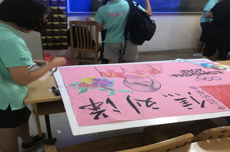 有点累但是很开心的一天,早上我被潘老师急忙地叫了出去,我心里还有点疑惑,当她把我领到办公室,并且向我展示别的班的加油海报成果时,我心里是有点着急的,我仔细看了别人班的海报~心想,我们一定要超越他们,要用写实的立体感和真实感去征服评委的眼睛。