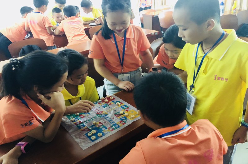 中午休息过后,丰富多彩的学习课程便展开了,下午上的是自然拼读课,上课的是年轻漂亮的女老师,课上我也学习到了一些拼读的知识点。接着,在班主任的带领下,我们在班里下棋,有五子棋、象棋、围棋等等,还有的同学在黑板上即兴画画,在紧张的学习生活中得到了放松。