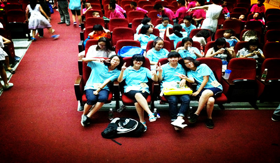 7月22日晚7点半,2013快乐夏令营“好声音”英语歌曲比赛在云山会堂圆满举行。参加英语歌曲比赛的选手们早早来到会场准备比赛,纷纷磨拳擦掌,进行热身。观众们也满怀期待地早早来到会堂,各班选手的啦啦队准备了口号,精心制作了牌子,只待班上选手粉末登场、闪亮亮相的时刻。第一个节目是小学中学一班的合唱“童年”,这曲“童年”被这些可爱的小孩演绎得十分纯真。而紧接着,高中部的王胜卿深情演唱《take me to your heart》,小学高级一班的邱梓阳的《baby》台风十足。而后,便是我们班关晓煜、关晓烨、麦洁莹、廖若璇组成的EXO-G组合带来热情四射的《365》,她们的歌让我感受到这四个正值青春年华的女孩的满腔青春热血。EXO-G组合一登场,初三班米88的体委猛地起身,手中加油的牌子立即变得万分醒目。与此同时,“铿锵之1音,绕梁不息;天籁之音,势夺冠军”嘹亮的鼓舞之声响起。舞台上,初三的孩子们投入地演唱这首欢快而振奋人心的曲目。舞台下,身为观众之一的我备受感染,歌词中传达出的可贵友情“365天,每天只为你而奉献难过或喜悦,在你需要的梦,就坚持信念”让我印象深刻。比赛前,她们便认真地准备,练习歌曲。而台前,由于幕后的努力与对音乐的热爱,她们也取得了可喜的成绩——高年级组二等奖。
