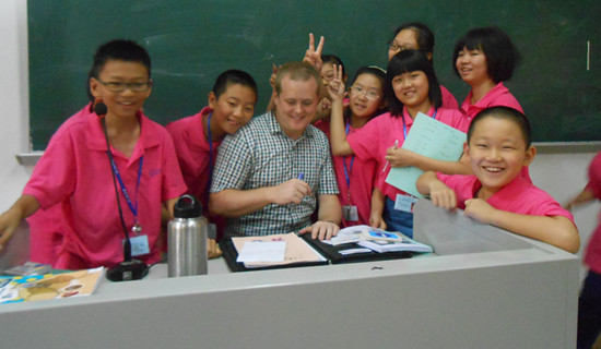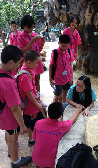 我们相遇于2013年7月炎热的夏天,广东外语外贸大学快乐英语夏令营报到现场,我们的缘分始于你们甜甜地喊我一声:老师。记得那时,你们脸上还挂略带羞涩的笑容,眼神闪烁,不敢直视我。我轻轻摸了一下你们的头,微笑着回应了你们一句:真乖,今晚见!你们可曾知道,你那一声声的“老师“融化了我的心窝,让我默默在心里告诉自己,在未来的15天,我一定要竭尽全力为你们创造一片充满欢乐,充满笑容的天空,为你们打造一个学习英语的快乐天地,而且也要尽力帮助你们消除内心的恐惧,以适应新的学习和生活环境,成为一个具备独立生活能力,融入集体生活的孩子、、、、、、