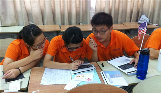 两天的相处下来,发现同学们学英语最大的问题就是不敢开口,莫呁霖是来自阳江的一个阳光帅气的小伙子,典型的理科生。从第一天聊天就知道,他数学非常的好,但英语是他的弱项,上课不敢开口讲话,因为怕说错了会被同班同学嘲笑,因此恶性循环,越害怕就越不敢开口,越不敢开口就越没有信心。开营后第一节课,我就不停地鼓励同学们和外教多交流。从陌生腼腆到慢慢熟悉。学生现在能够主动的和外教交流提问,这是一个好的开始。每每看见学生在课堂上主动向外教提问,我都非常的高兴。