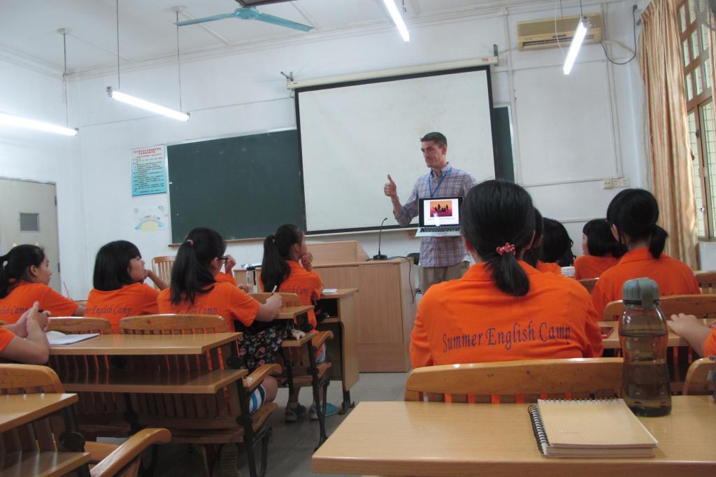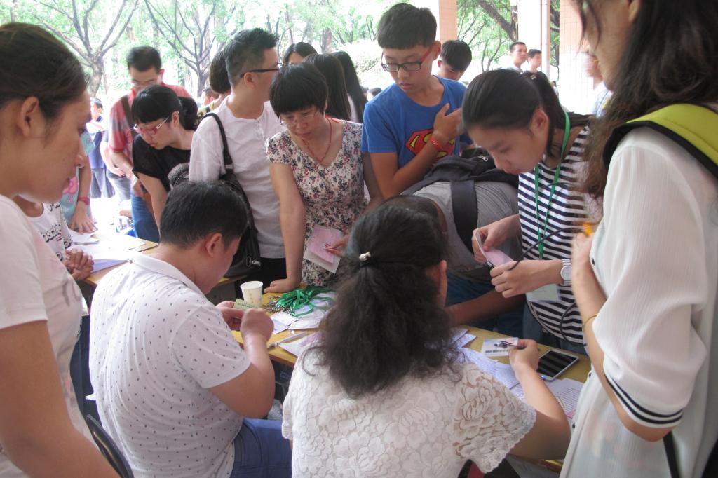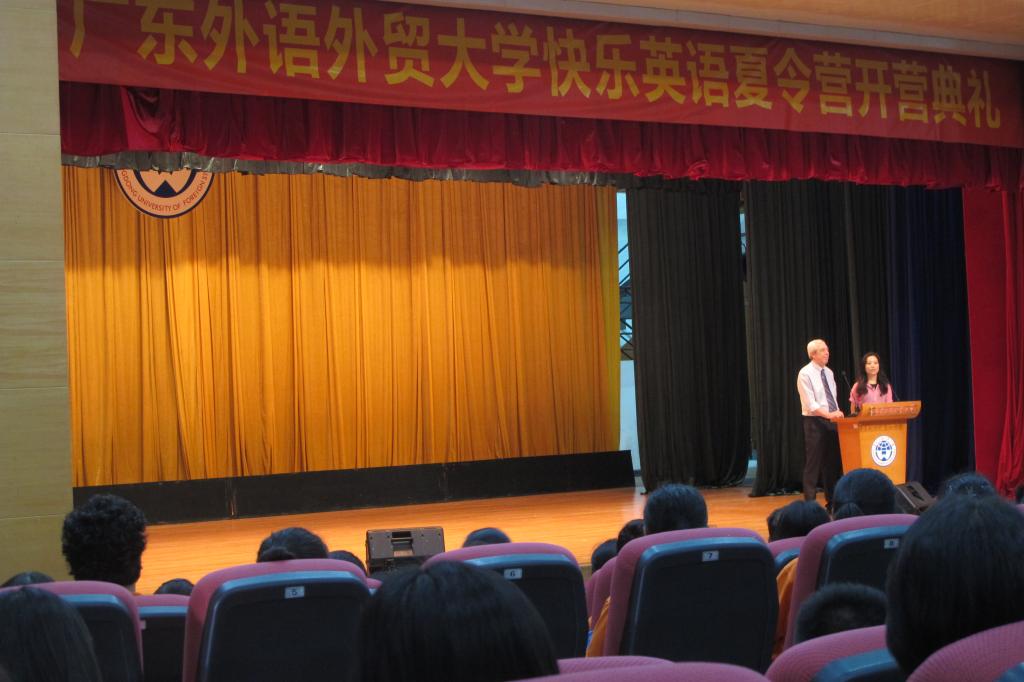 本网讯 7月18日上午,广东外语外贸大学2015年英语夏令营在校本部第二教学楼一楼大厅迎来了报道的新学员,报道现场人头攒动,秩序井然。经过一天的报道、入宿后,各班班主任和同学们在第三教学楼进行了第一次班会。班主任介绍详细的注意事项后,同学们都相继上台进行自我介绍以便相互认识。