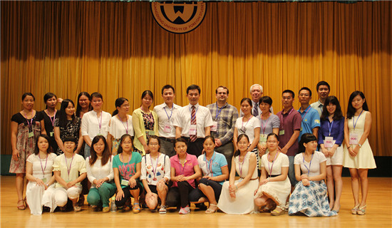 本网讯 2015年7月18日对于广外快乐英语夏令营和阳山县中小学教师是一个重要的日子,因为今天我们的广外快乐英语夏令营开营了!虽然天公不作美,在老师报道测时候下起了大雨,但这没有打击阳山县老师们对于夏令营培训的期待。在陈老师的接待下,老师们顺利的办理了入学手续并入住到第一招待所。当日下午,我带领20位阳山县的老师参观了我们美丽的广东外语外贸大学校园,感受浓厚的大学学习气氛,大家都很喜欢广外的教学环境。