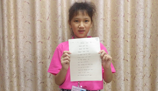 今天晚上,小四班的同学晚饭过后小憩一会,便开始参加英语硬笔书法比赛。班主任早在下午便精心挑选诗歌《NeverGive Up》(永不放弃),希望学生在誊抄的同时受到老师们的鼓舞。同学们一字一句认真誊抄,可谓铁打不动呢!