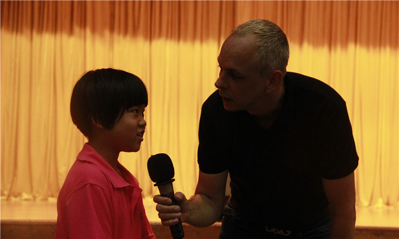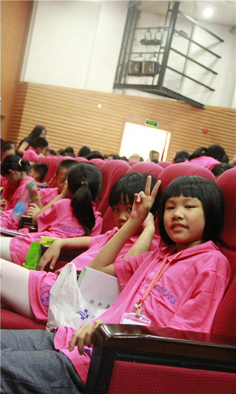 早餐过后,小四班集队去第六教学楼报告厅参加开营典礼,看着高大上的报告厅,小朋友们纷纷表示惊叹,看着他们一个个惊讶的表情,让我这个广外人特别自豪。开营典礼上,任跃忠副院长的中英文讲话,让小朋友们感到亲切,学工组负责人肖丽芳老师幽默轻松的讲话,让小朋友们知道在夏令营也是要依规矩行事的。最让他们开心的是与外教的互动,看着他们大胆且自信地与外教进行面对面的交流,完全不会因为年纪小而怯场,颇有“外交官”风范。