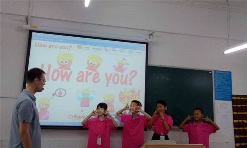 小四班夏令营的第一节课就是外教课,一些在开营典礼上没能跟外教互动的同学,主动跟走进课室的外教问候,交流。看着他们的积极主动,相信在接下来的时间里,他们能够有所收获。