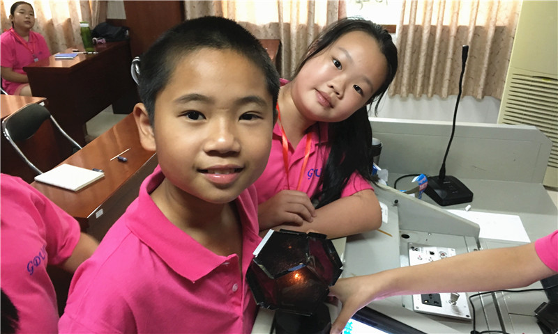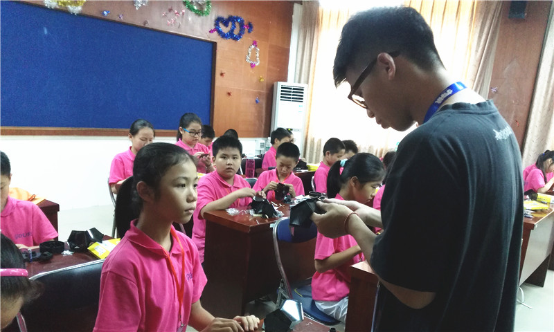 本网讯 7月21日,夏令营的第四天。经过了早上外教Bim的课后,下午,小六班的学生们迎来了两天一次的小牛顿课。由于第一次的小牛顿课给学生们带来了不少的惊喜,特别是最后由他们亲手制作出来的时光定格机——这是一个类似于相机的成像原理的小玩具。他们都对新一节的小牛顿课充满期待。经过了课堂开始后一系列的对用电器、电压、电流的介绍后,任课老师亮出了本次的的小牛顿课目标:制作一个观星仪器。