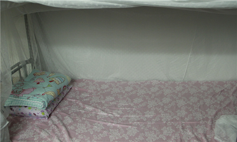 先看看女生宿舍的战况。爱干净的女孩子们,把自己的床铺收拾得井井有条,在梦幻紫色和可爱粉蚊帐的点缀下,整洁之外又多了几分温馨;桌面上除了书本和一些日用品之外,其他东西都收纳桌柜里;桌面擦得干干净净,在灯光的反射下还发亮呢;看那一尘不染的地面,是孩子们先扫后拖,挥洒汗水的战果。