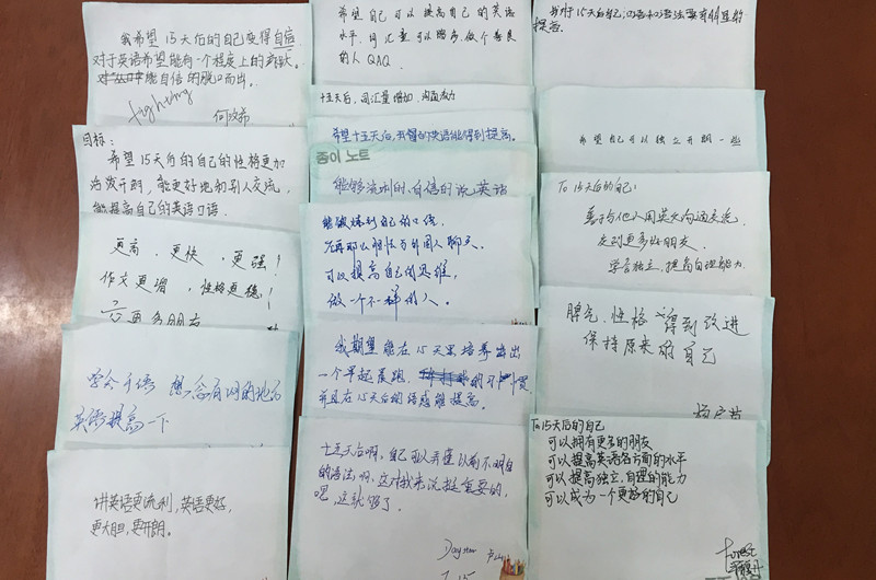 梁馥丹说:15天后的自己,可以拥有更多的朋友、提高英语各方面的水平、提高独立、自理的能力、可以成为一个更好的自己。