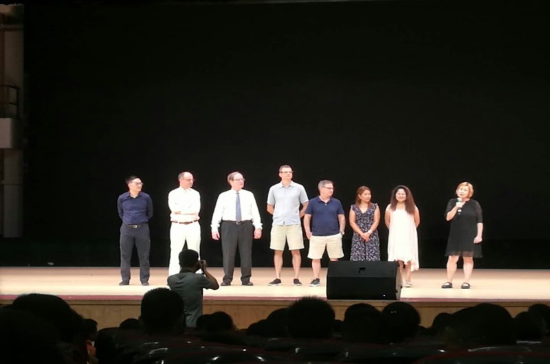 开营仪式结束后,交流C班的所有学生和外教还有班主任有个集体的合影留念。美好的第一天从此处开始了......