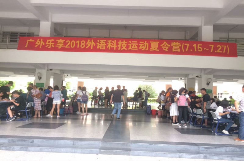 2018年7月的第一个工作日,天气特别的给力,蓝天白云让参加夏令营的同学们心情都特别舒畅,每位同学的脸上都洋溢着开心的笑脸,背着书包,开开心心的踏入他们的教室,他们象征着祖国未来的花朵,他们带着家长对他们的期望和寄托来到了2018广外乐享夏令营。然虽开营的第一天送行的家长有万般不舍,但也明白孩子的成长从背起行囊的那一刻,已经开始了。