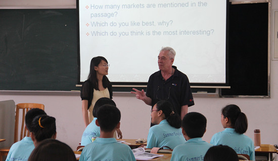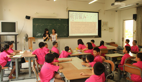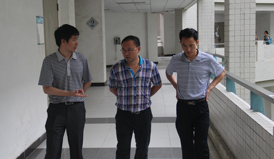 本网讯 7月17日是夏令营开营的第三天,学院副院长陈开举和党委副书记曾健文分别带领广外快乐英语夏令营南校区学工组负责人陈秋林,教学组负责人刘文明检查南校区夏令营教学与学生工作情况。