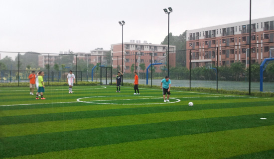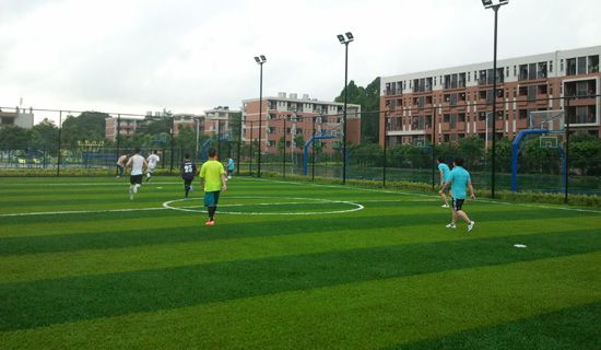 本网讯 7月26日下午4:30,应快乐英语夏令营高中部同学们的盛情邀请,夏令营的学工老师一起来到了位于广外17栋宿舍边的新足球场,参加由高中部同学们提议策划的5人足球赛。