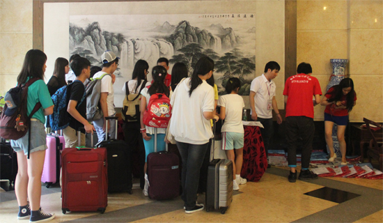 本网讯 7月31日下午,参与本次粤澳青少年交流夏令营活动的各地学生首聚广外北校区。本次报到兵分两路,大陆学员由家长陆续送达学校;澳门学员统一从澳门抵达广外。报到现场,夏令营的相关负责人向每一位学生发放夏令营所需物资,并把学员引领到宿舍。现场有条不紊,工作人员服务细致周到。