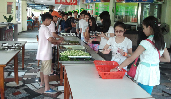 澳门学生排队取饭,学员们可以任意挑选具有广东特色的菜式