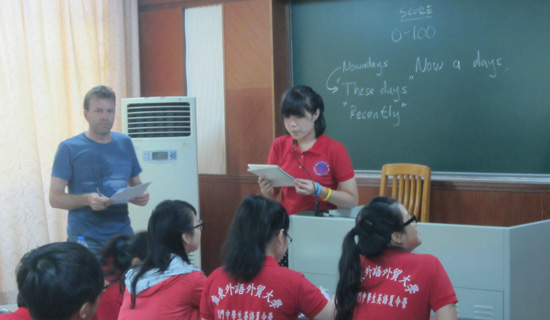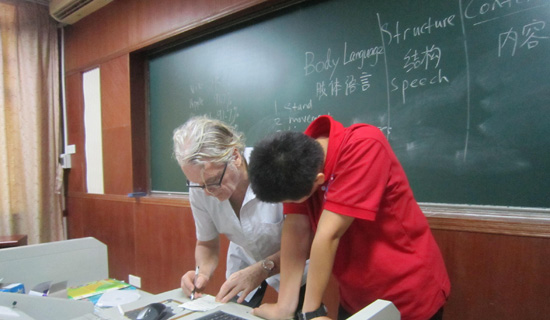 学员演讲过后,外教都会详细认真地点评,表扬做得好的地方,指出做得不足的地方,并现场示范,帮助学员提高演讲能力。