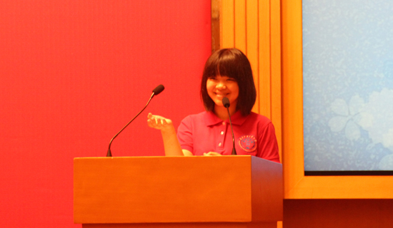 接下来是文艺表演时间,文艺表演环节由初中班黄芷晴和高中班黄秀勤两位同学担任主持人,两位同学全程用英语主持,表现了专业的主持风范及突出的英语能力,赢得台下阵阵掌声。