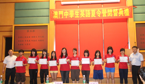 本网讯 2013年8月15日上午,广东外语外贸大学2013年澳门中学生英语夏令营暨粤澳青少年交流夏令营闭营典礼在北校区行政楼国际会议厅隆重举行。广东外语外贸大学继续教育(公开)学院院长何勇斌、副院长陈开举、夏令营教学组组长吴文权、后勤保障组组长蒋小平、学工组组长赵正苗出席了本次典礼。夏令营全体教师和学员参加了闭营典礼。典礼由吴文权主持。