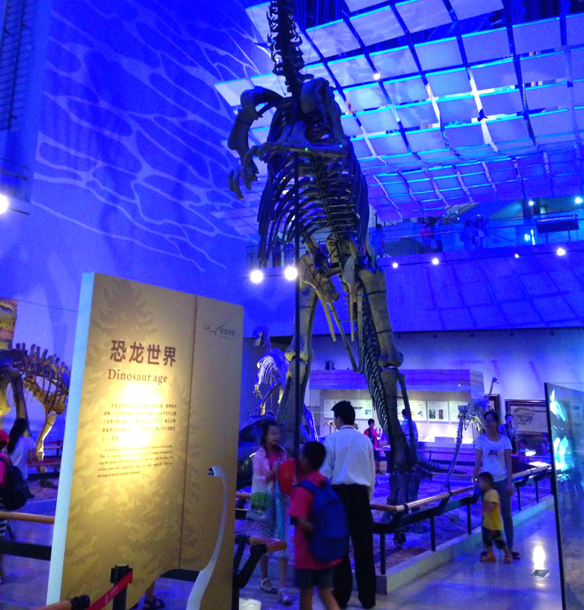 今天上午是去广州博物馆。我们来到博物馆,首先,一个巨大的长方体建筑映入眼帘,上面有许多完全不一样的、用玻璃做的好像俄罗斯方块一样的东西。它们 嵌在上面,好像黑红色的首饰盒上的珍珠一般,十分有特色,别具特点。一进门口,一个既宽敞又光亮的大堂浮现在前,大堂的周围有二分之一的地方做了一个玻璃的架子,里面放了贝类、瓷类,走在上面,好像马上就要掉下去、踩到它一样。我们上了四楼,然后走进了一个展馆,里面像岩洞一样,往里走,先看到的是一些矿石,然后是水晶、玉牙、象牙…….应有尽有,使得我眼花缭乱。再里面,就是栩栩如生的动物,海、陆、空一应俱全。我们还见到了化石和恐龙的骨头呢!
