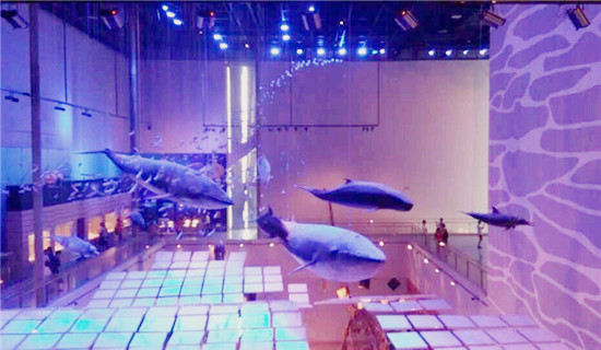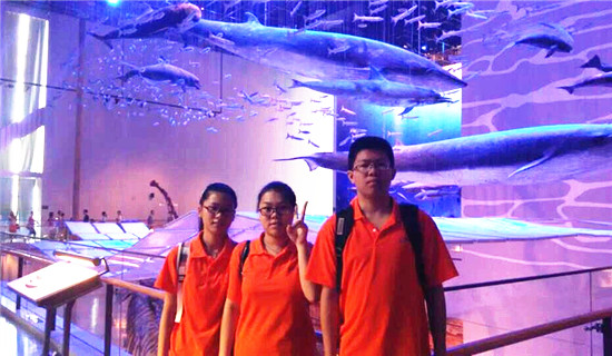 一走进博物馆,夏令营学员就被展示柜中陈列的各种精美宝石吸引住了,大家拿出手中的相机“咔嚓咔嚓”地拍照,感慨大自然的鬼斧神工。当来到二楼的海洋主题馆时,各种海洋动物悬浮在空中,配合着蓝色的灯光,仿佛置身于海底世界,令学员们流连忘返。海洋馆边上的恐龙世界则是小男孩的最爱,大家争先恐后的参观各种中恐龙骨骼,人群中不时发出“哇!哇!”的惊叹声。时间一眨眼的功夫就过去了,学员们恋恋不舍地离开了广东省博物馆。