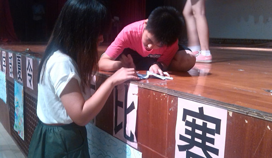 参赛选手,利用课间和晚上休息时间,都会在一起跟着音乐练习节奏,练习动作以及配合彼此之间的默契。本次的节目主持人是我们班的区俊晖和徐子凌两名同学。两位小主持人只要一见到外教老师,都会让她帮忙纠正发音和语音语调。当然,我们全体同学也不甘示弱,为了在班歌环节有更好的表现,利用早读时刻和晚上活动时间,都会打开教室多媒体,跟着音乐练习班歌《红日》。