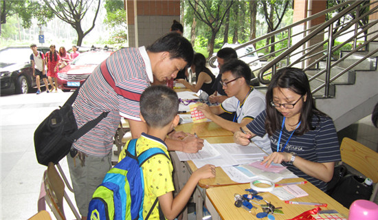 上午九点,学员们陆续到来,在现场工作人员的指引下,学员们有条不紊地完成了填写资料、领取学员证、钥匙、饭卡、营服等环节,一些夏令营的老学员不仅轻车熟路完成自己的报到,还帮工作人员发放服装,还有很多学员是兄弟姐妹、同学一起来参加夏令营学习。