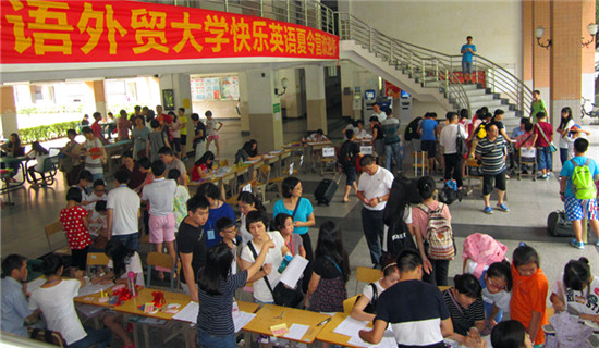 本网讯 7月18日,广外快乐英语夏令营在北校区火热开营,第二教学楼一改周末的宁静,迎来了来自各地的350多名学员。