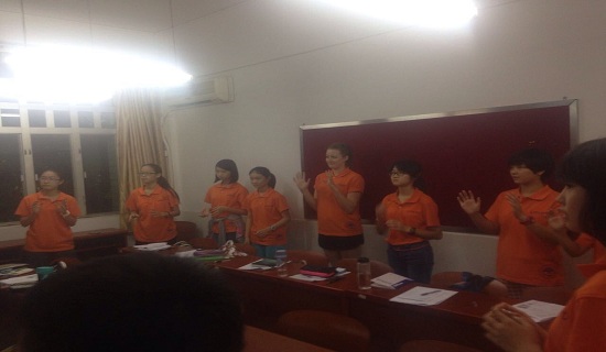本网讯 7月21日,快乐英语夏令营进行到第四天,中英国际(1)班同学们的学习热情并没有因为下着大雨的天气而消退。今天的主题是关于“运动”。上午依然是由来自英国的友人向大家介绍英国的运动。他们准备了充足的道具,包括图片和各种运动器材。首先以小组为单位,英国友人向大家介绍了流行于英国的各种各样的运动,包括“snooker”“cricket”“hockey” 等等,通过各种动作和道具,让大家对这些运动有了深刻的了解。然后大家围成一个大圈,其中一人手中拿着一个小球说出一个和运动有关的单词,再迅速将球任意抛给另一个人,接到球的一方再做相同的事情,没有说出单词或单词重复的同学即被淘汰。这样既激发了大家的学习热情,也巩固了当天的学习内容。