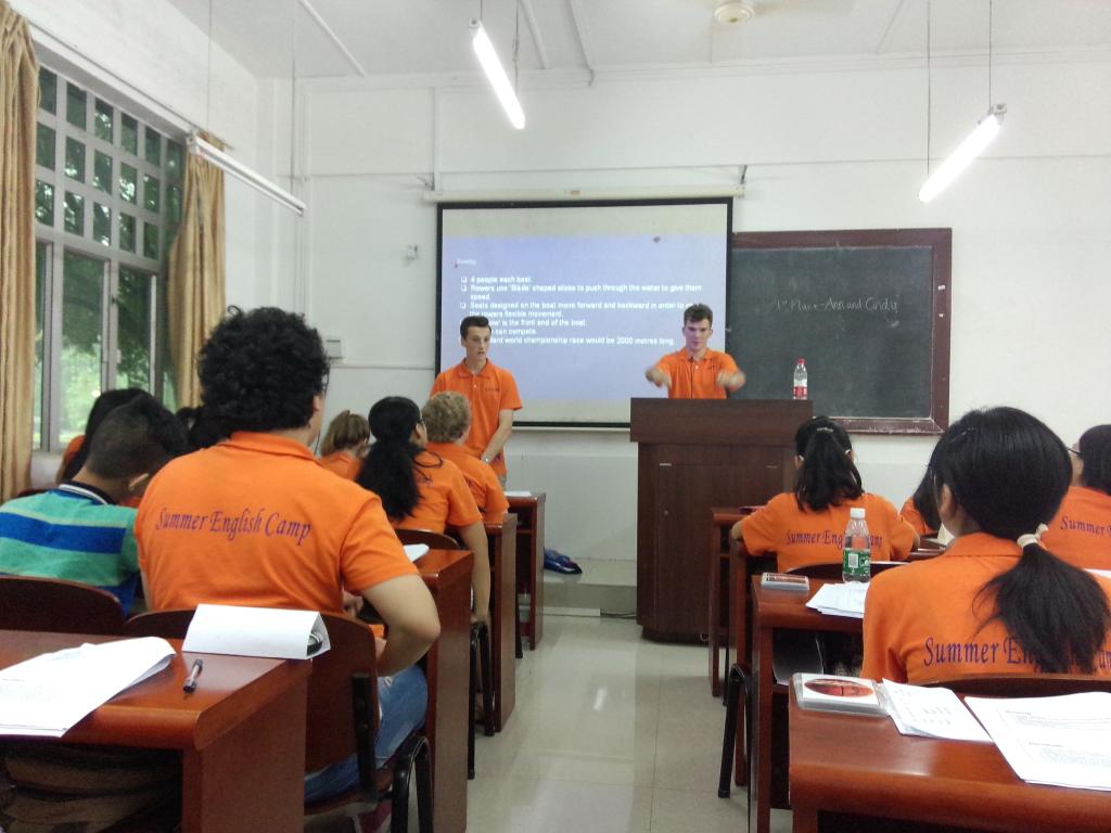 本网讯 7月21日,上午9:00,中英国际2班迎来了第三天的夏令营学习日。今天学习的主题是“英国运动”。中国学生积极发问,勇于发言,通过课堂学习认识到也了解到英国的各项运动及其相关规则,从而进一步熟悉了异国风情和文化,激发了英语学习的热情。