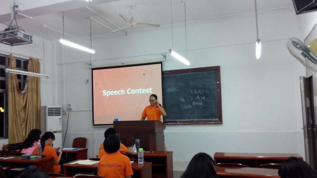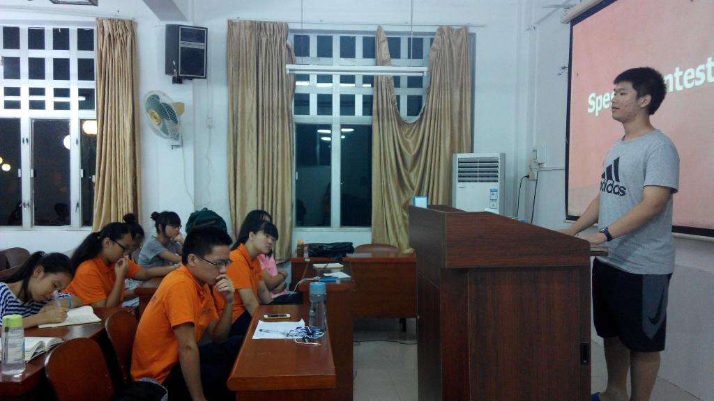 本网讯 7月27日晚8:00整,中英国际2班筹划两天的班级演讲比赛正式拉开序幕。演讲比赛主题为“My China Dream(我的中国梦)”,演讲时间为1-3分钟,评委为国际1班的两位助教,全班同学均参与了此次比赛。比赛中,各位选手“演讲范”十足,将自身梦想与“中国梦”相结合,希望在未来能实现理想,促进祖国的繁荣昌盛。