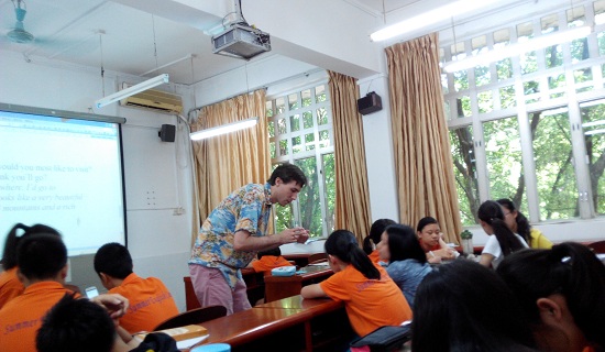 下午是幽默风趣的Alex老师的全英视听说课程。首先,Alex老师让大家说出了自己的summer