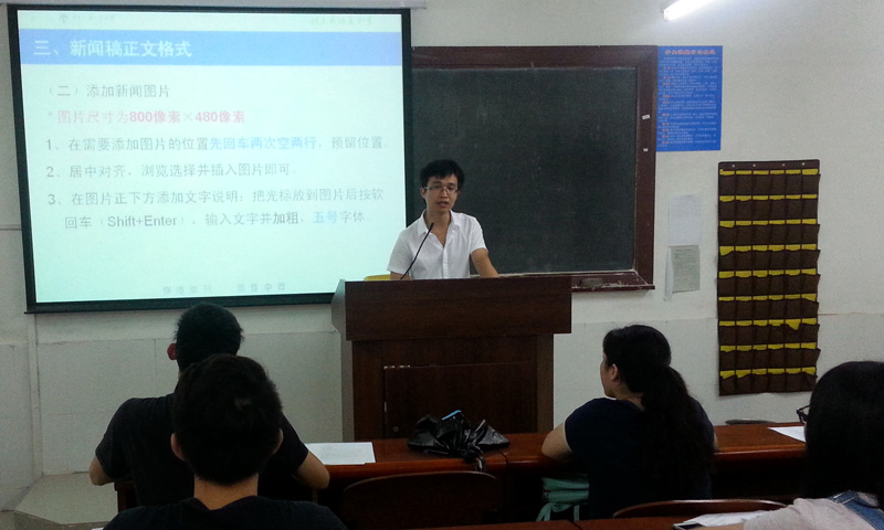 上午十点,第二场夏令营网站新闻稿件发布培训准时开始。林聪老师就稿件发布流程、新闻稿格式、图片格式处理、注意事项等各方面进行了详细讲解,班主任们很认真地听讲。在林聪老师细致地讲解下,各位班主任很快熟悉了操作流程。