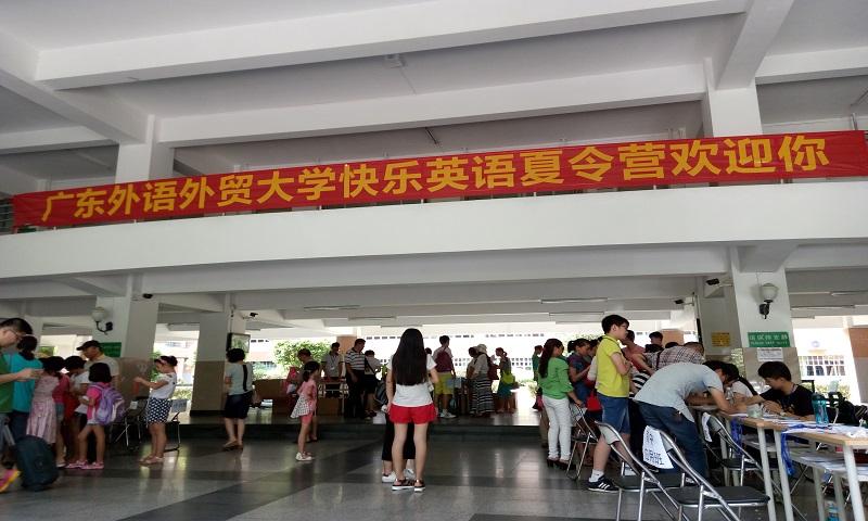 本网讯 2016年7月17日这天迎来了2016年广东外语外贸大学快乐英语夏令营的开始。伴随着夏季的热情,各位学员拖着行李,带着笑容,来到了广外的校园。整个校园因为这群青春的身影,增添了一份色彩。报到、整理宿舍、熟悉校园,一切都在各位老师、工作人员的安排和指引下有条不紊地进行着。