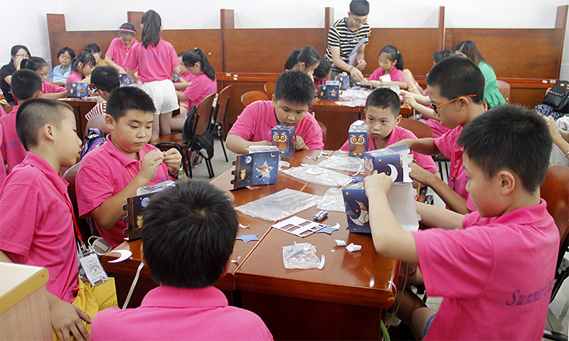【图集】夏令营开放日:小六班制作“眨眼猫头鹰”