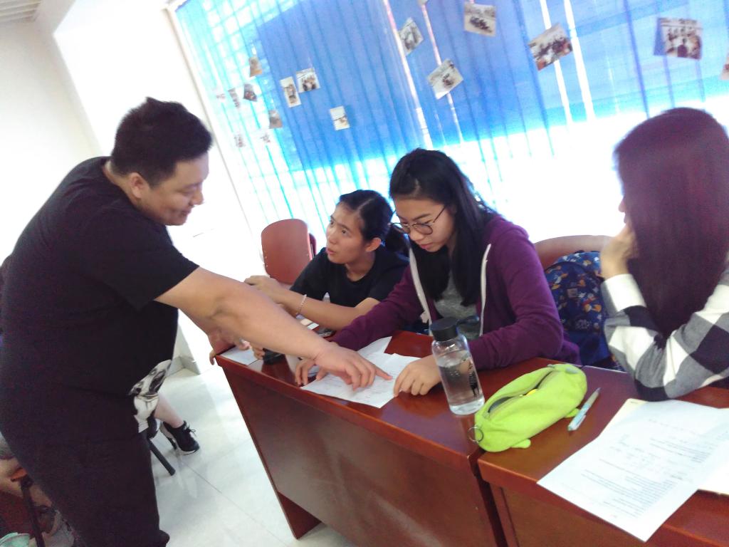 外教在开拓学生的思维,让学生自己想出来各种词性的单词,然后根据学生想出的单词来填写到另一个需要填词的故事上,通过发挥想象力来创造一个全新的故事。